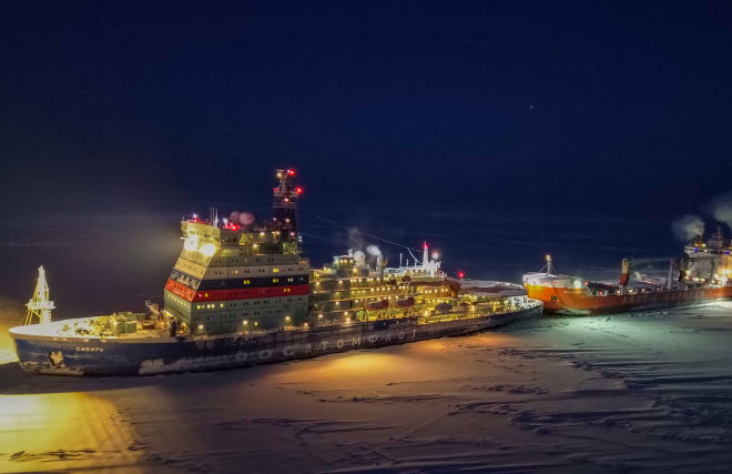 Впервые на СМП атомоход провёл судно высокого ледового класса методом буксировки «вплотную»