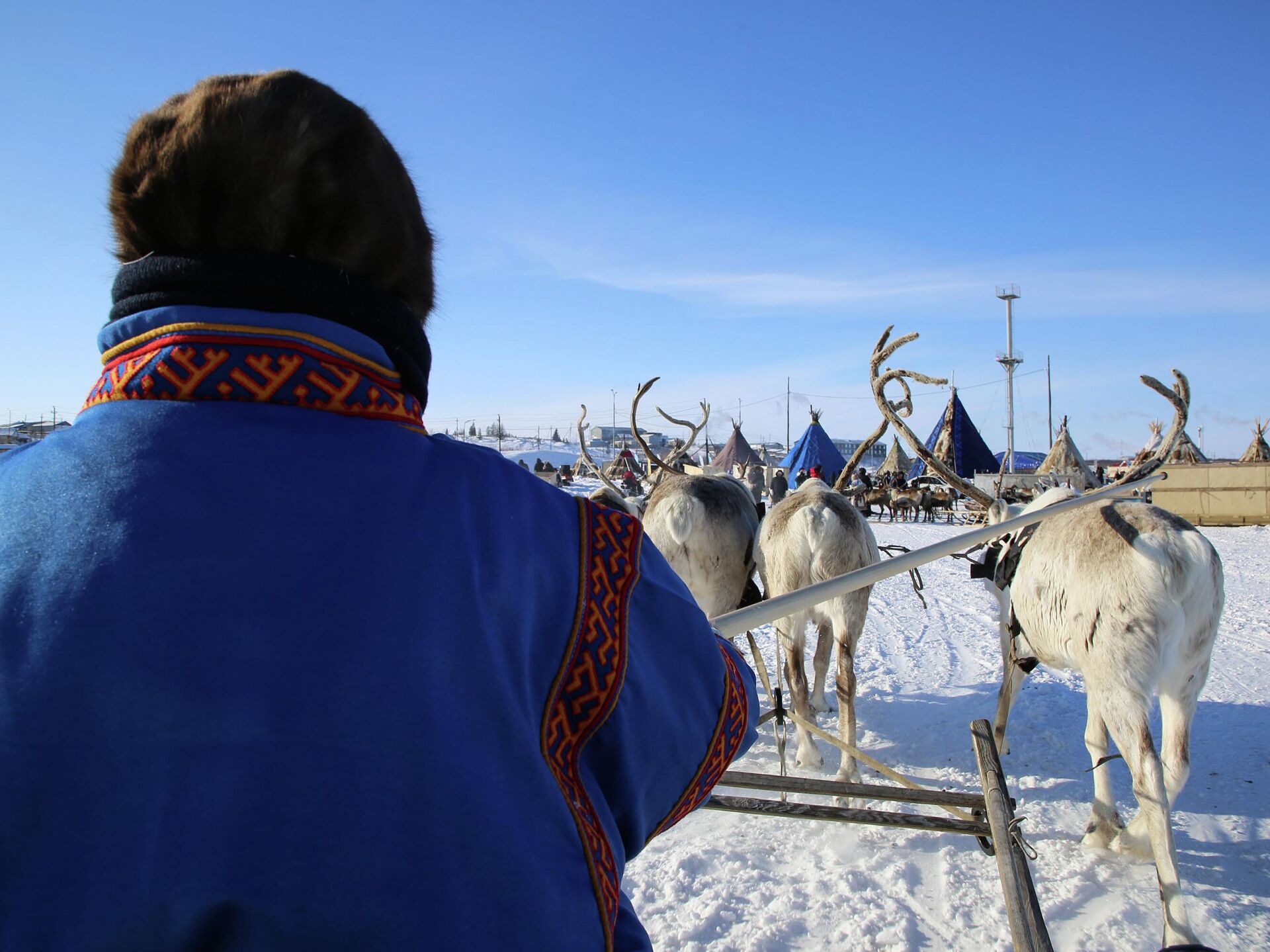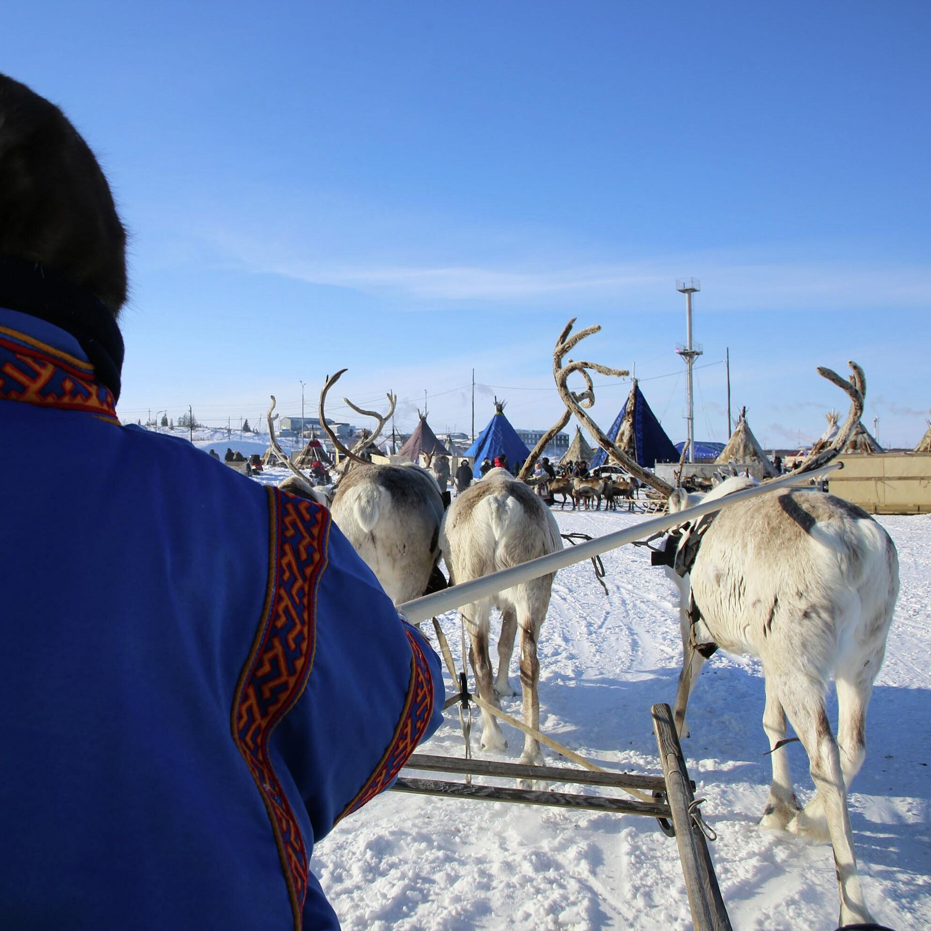День оленевода – большое событие на Ямале, которое отражает историю и быт коренных малочисленных народов Севера. Общенародный праздник ежегодно стартует в Надыме, и тысячи людей отмечают его до середины апреля.21 марта каслание (прим. ред. – кочевание) оленеводов привело в посёлок Тазовский, где два дня его жители и гости отмечали долгожданное событие.Команде нашего портала удалось воочию понаблюдать, как многовековые культура и традиции гармонично переплетаются с современными конкурсами, играми и спортивными состязаниями.Чему учат суровые условия вечной мерзлотыМорозное утро, яркое солнце и штиль – распогодилось. Нам, жителям Центральной России, привыкшим к мягкой погоде, несказанно повезло – метели в первый день не было. На льду реки Таз, где раньше проходил исторический северный путь в Мангазею, развернулся целый кочевой посёлок.Довольно неожиданно первый день празднований начался с предсвадебной суеты. Дело в том, что организаторы-затейники создали колоритный ЗАГС на площадке фестиваля, а точкой притяжения стал один чум, который внешне не выделялся на фоне других.Роман Оковай и Фаина Салиндер вместе уже год. Сами ребята поселковые, но их родственники ведут традиционный образ жизни в Гыданской тундре. По их словам, сыграть свадьбу в День оленевода в традиционном чуме – дань уважения предкам.На торжество собрались близкие родственники пары, которые покинули привычные бескрайние просторы пастбищ. Несмотря на холод, гости пришли не с пустыми руками. Им удалось раздобыть букеты цветов среди тундры и доставить их до точки назначения.Представители местного ЗАГСа подготовили и другую необычную для бракосочетания площадку. По соседству Музей вечной мерзлоты встречал пару, которая предпочла суровую красоту исторического мерзлотника.Михаила и Викторию Яр прибыл "благословить" и глава Тазовского района Виктор Югай. Символично, что пара познакомилась на Дне оленевода в Гыде в 2023 году. Всего во время слёта на этом фестивале родились четыре новые семьи.Вернуться из Музея вечной мерзлоты на реку Таз нам удалось как раз вовремя.Людей стало заметно больше. Малыши заполонили снежную горку и соседствующий каток, а внизу разогревались спортсмены. В этот день участники слёта оленеводов состязались в дисциплинах северного многоборья.На соседней площадке организовали соревнования среди женщин по метанию старинного ненецкого орудия для охоты на дичь – лемпты, а кочевники собирались для участия в стрельбе из лука и национальной борьбе."Сама природа учит нас главному. Как в суровых условиях рождается сила духа, так и настоящий мужчина закаляется вечной мерзлотой", – наставлял взрослый ненец болельщиков.После этих слов неожиданно в наше поле зрения попал тот самый "банан", который привязывают к катеру и катают туристов тёплого побережья, пока они не потеряют плавки. Умельцы прикрепили его к "Бурану" и ждали любителей адреналина, но большим спросом всё же пользовались оленьи упряжки.Подходило время обеда. Наша команда решила пойти на разведку и выяснить, насколько гостеприимны ненцы. Четырнадцать чумов выстроились в два стройных ряда и принимали гостей. Мы спросили разрешения войти в один из них, нас одарили улыбкой и жестом пригласили присесть на нюки (оленьи шкуры). Кормили крепким бульоном евэйем, сырой и варёной олениной, ры