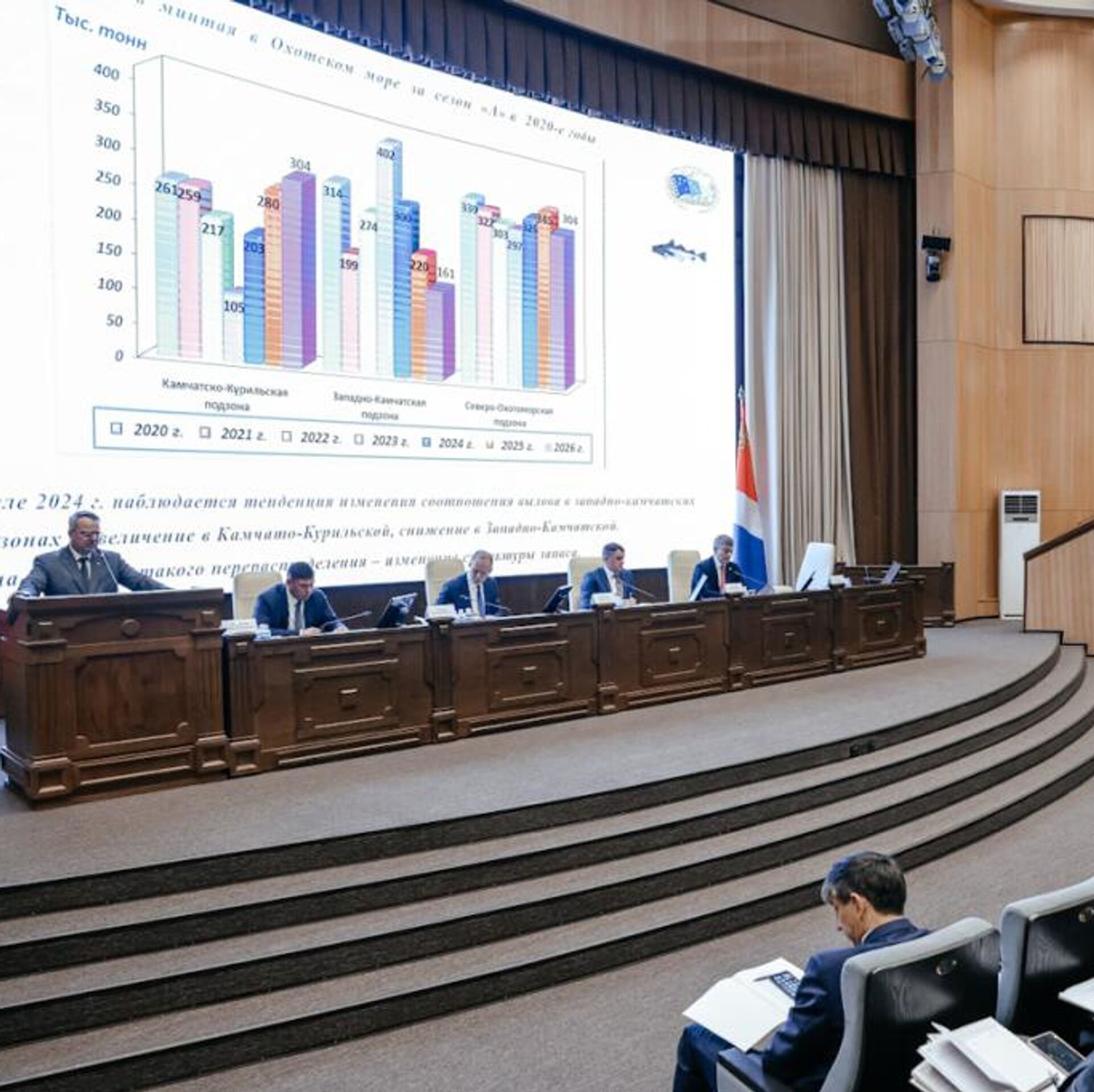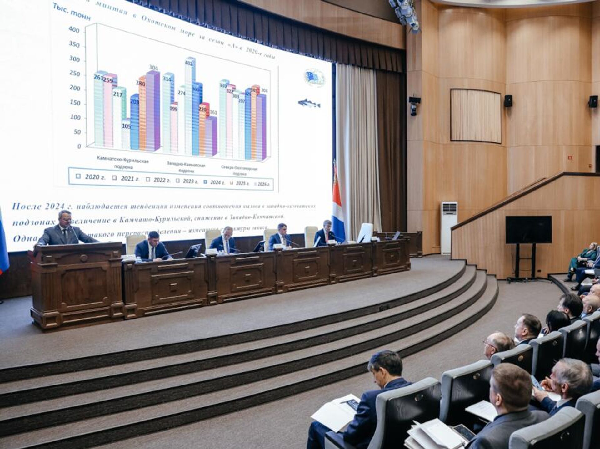 Учёные, рыбаки и регуляторы Дальнего Востока обсудили итоги минтаевой путины, прогноз вылова лосося и новые ориентиры отрасли. Как сообщает пресс-служба правительства Приморского края, заседание Дальневосточного бассейнового научно-промыслового совета прошло во Владивостоке под руководством главы Росрыболовства Ильи Шестакова."В прошлом году зафиксирован рекордный вылов минтая – 2,2 млн т. На будущее у нас хороший прогноз по иваси и сайре. Нужно эти промыслы осваивать. Очень важно, чтобы рыбаки сорганизовались и вышли на этот промысел. Предприятия уже сейчас модернизируют суда и готовятся к добыче сайры. По прогнозам науки, сайра подойдёт в нашу экономическую зону, вылов может составить сотни тысяч тонн", – рассказал глава Росрыболовства Илья Шестаков.В ходе встречи прозвучали основные показатели отрасли: так, минтаевая путина обеспечивает более 40% всего вылова на Дальнем Востоке. За январь – апрель текущего года освоено 75,9% общего допустимого улова минтая, остаток на октябрь – декабрь составляет 244,4 тыс. т. Средний суточный вылов в Охотском море за первые четыре месяца – 7,7 тыс. т.Лидерами по вылову остаются Камчатский край, Хабаровский край и Сахалинская область.По словам зампреда краевого правительства Кирилла Хижинского, в отрасли региона наблюдается положительная динамика. Рыбаки Приморья готовы одними из первых на Дальнем Востоке начать путину – промысел горбуши и симы стартует 20 мая."В целом отрасль показывает достойные результаты. В 2025 году вылов приморских компаний составил 886 тыс. т. Оборот организаций достиг 160 млрд рублей, а налоги в бюджет края – 10 млрд рублей", – подчеркнул он.